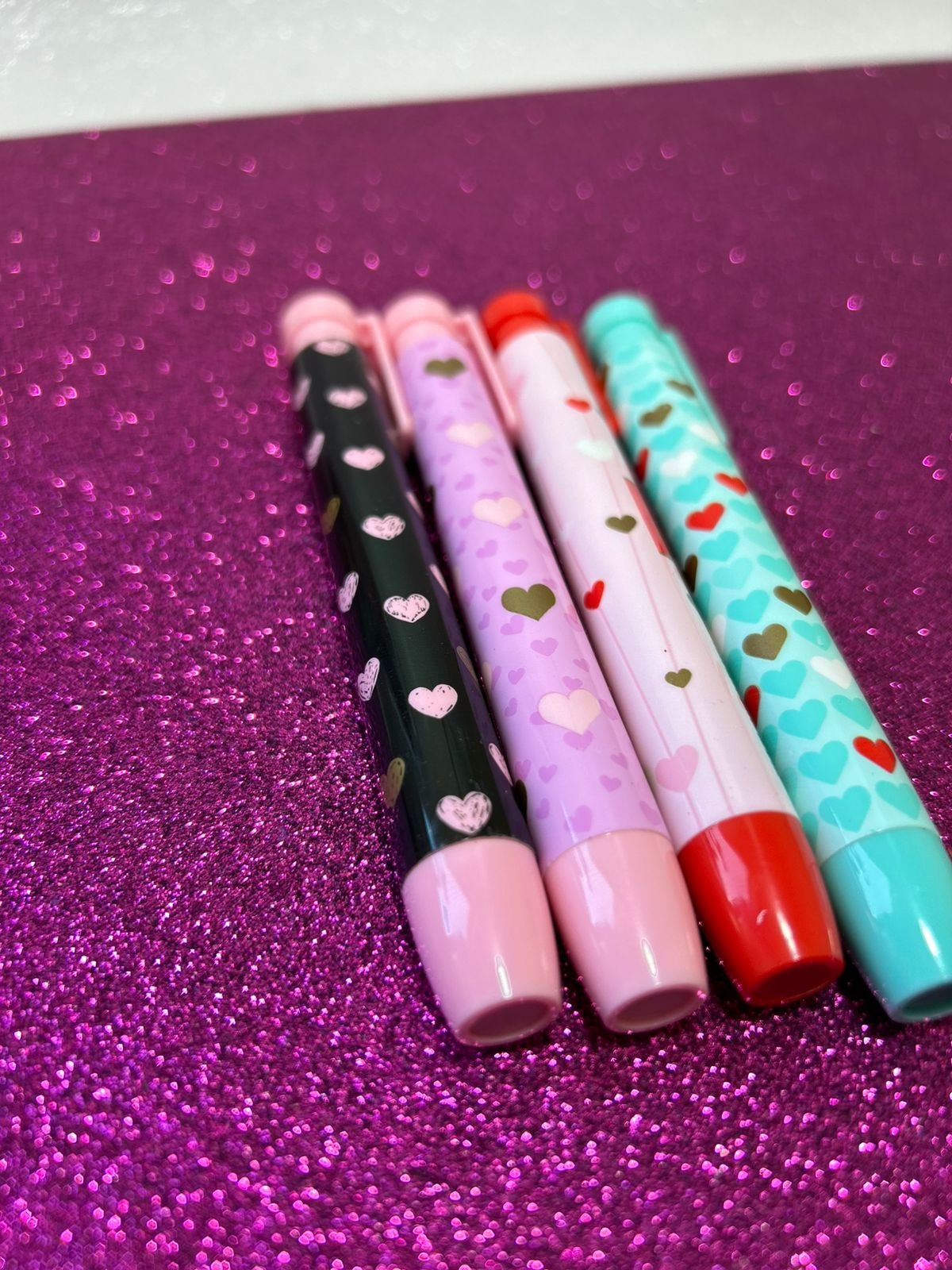 Com um design de coração encantador e cores vibrantes, ela traz charme ao seu dia a dia enquanto oferece um apagamento suave, eficiente e sem borrar.