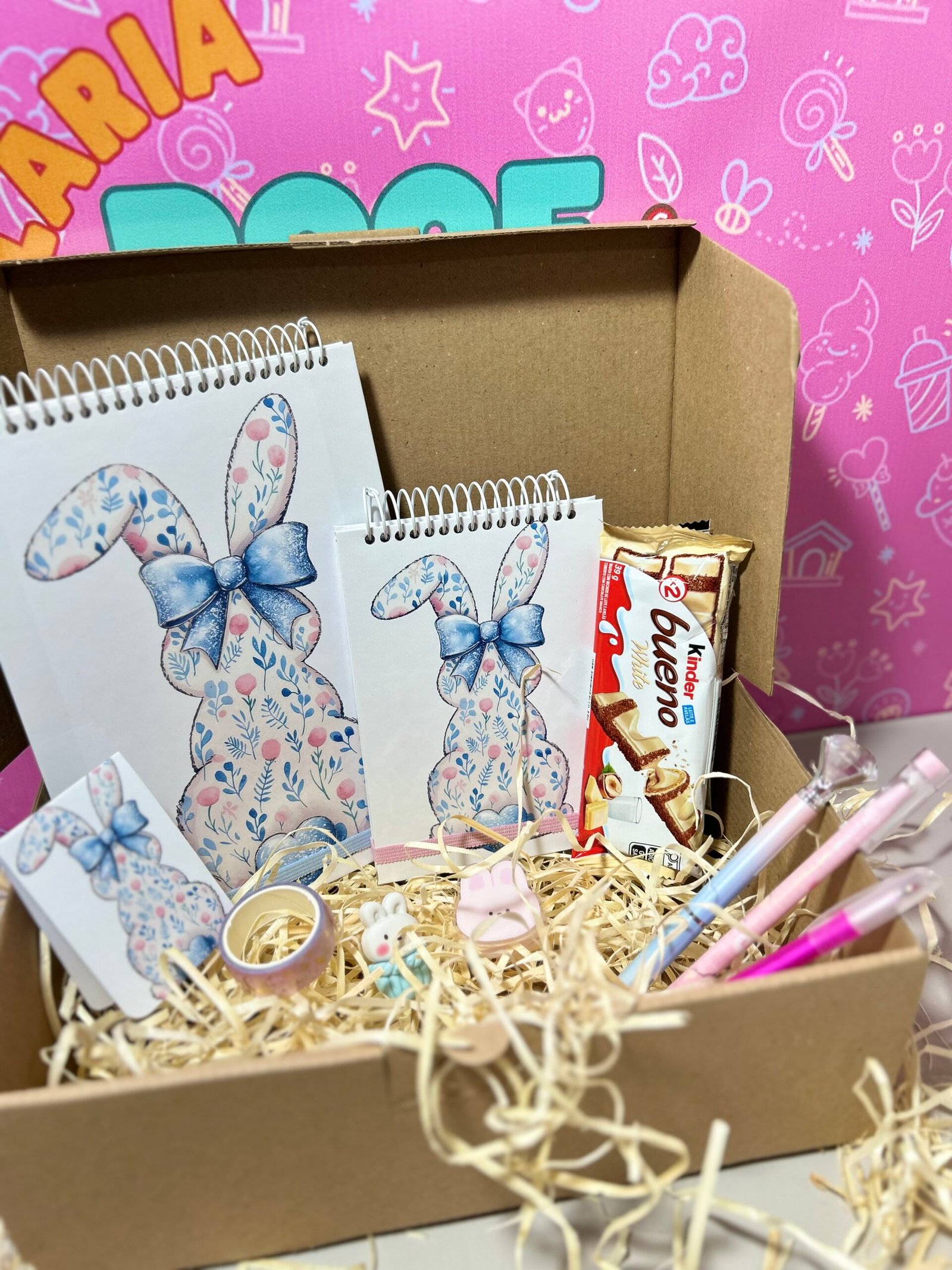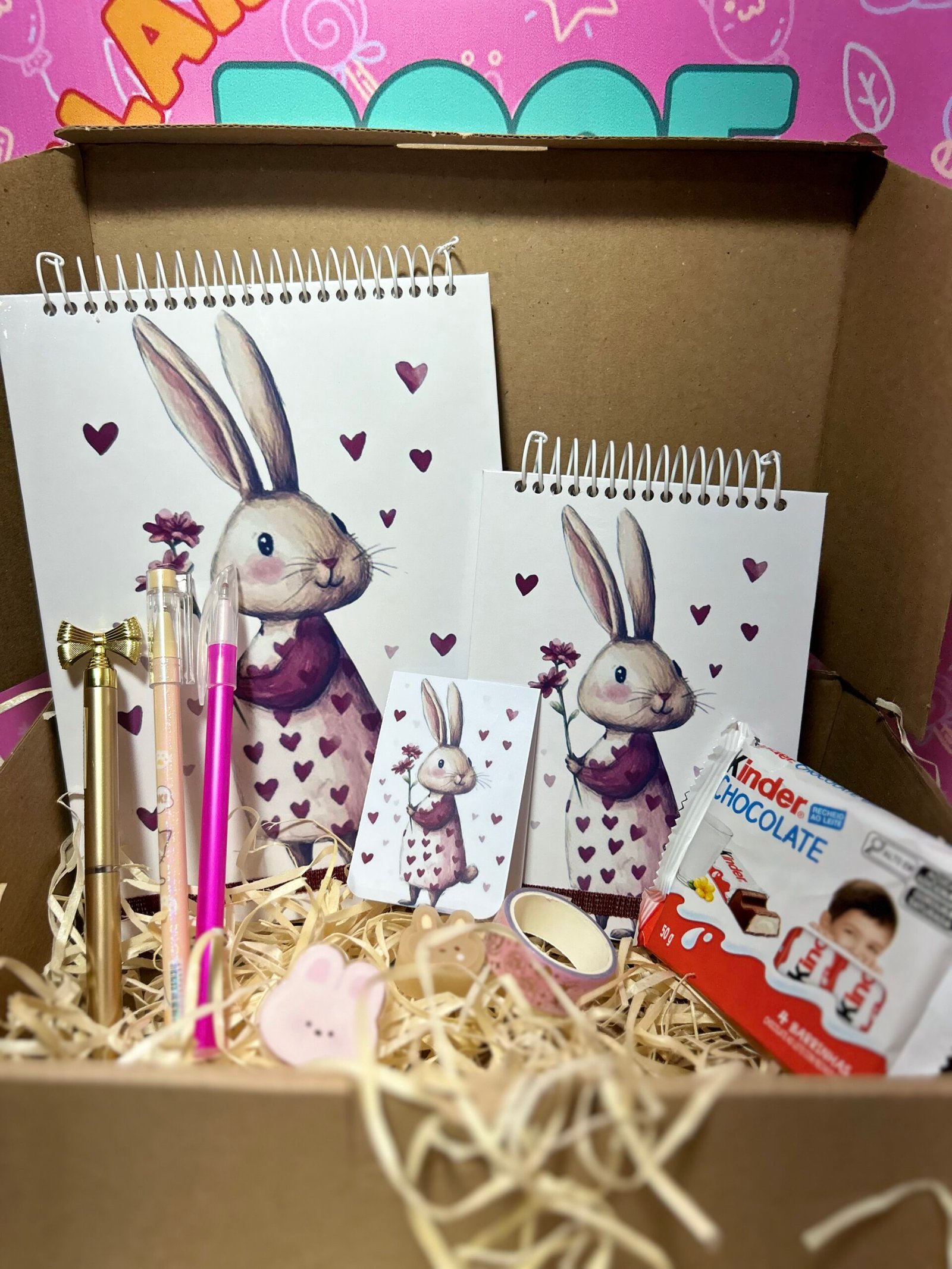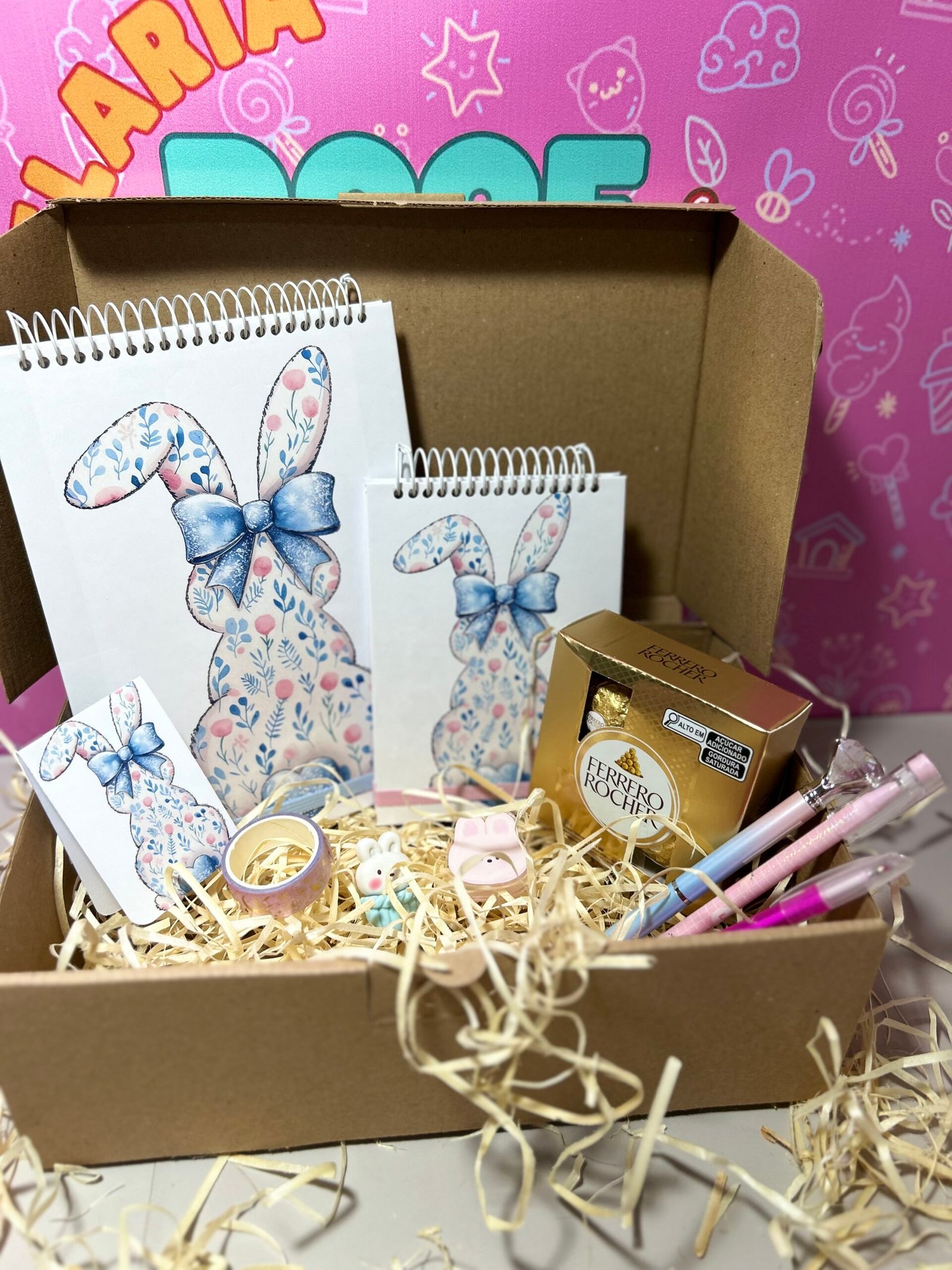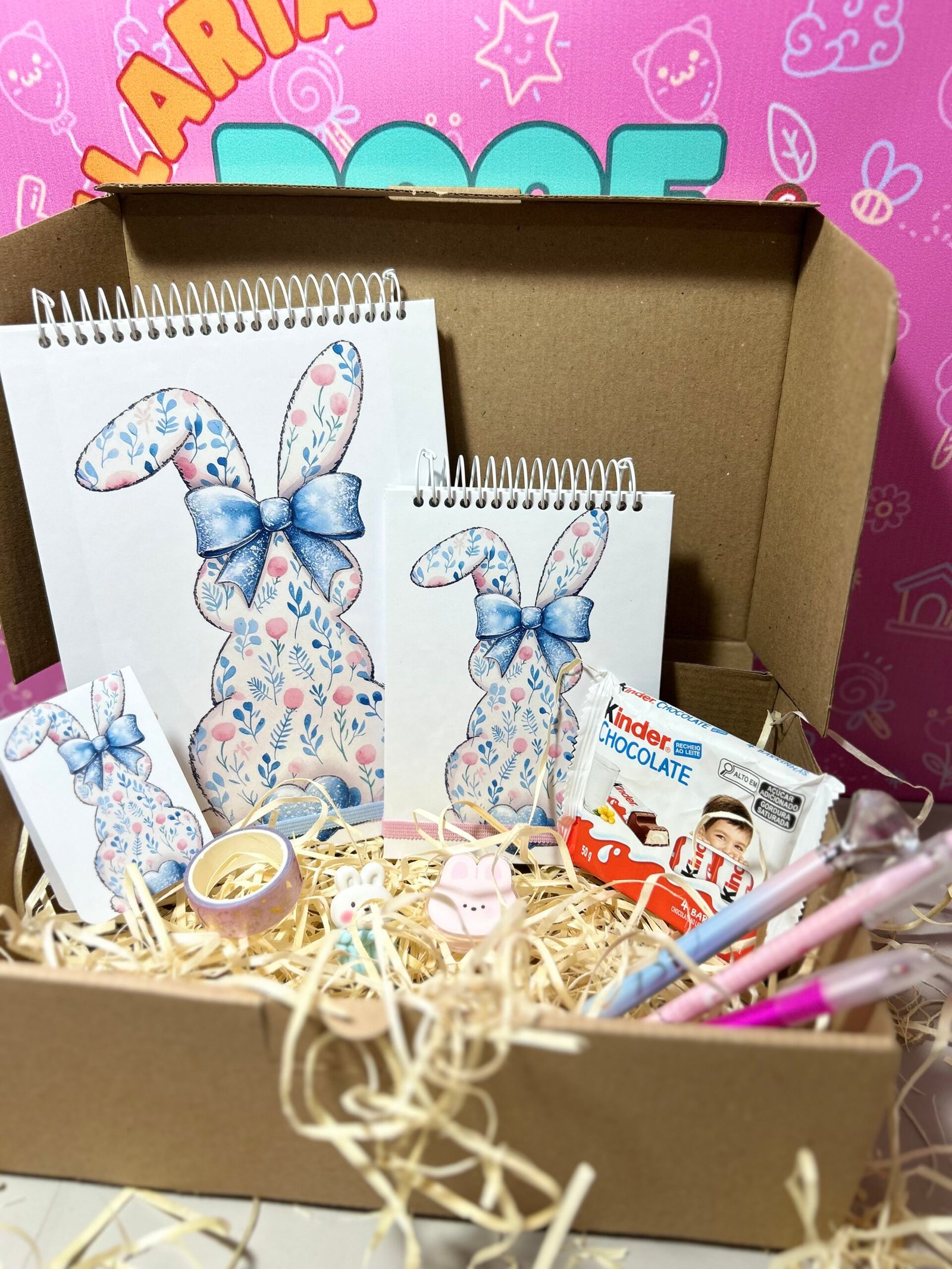 O Kit Páscoa Especial foi pensado para quem quer presentear com ainda mais criatividade. Com dois blocos personalizados e itens de papelaria encantadores, é uma opção completa e cheia de carinho.